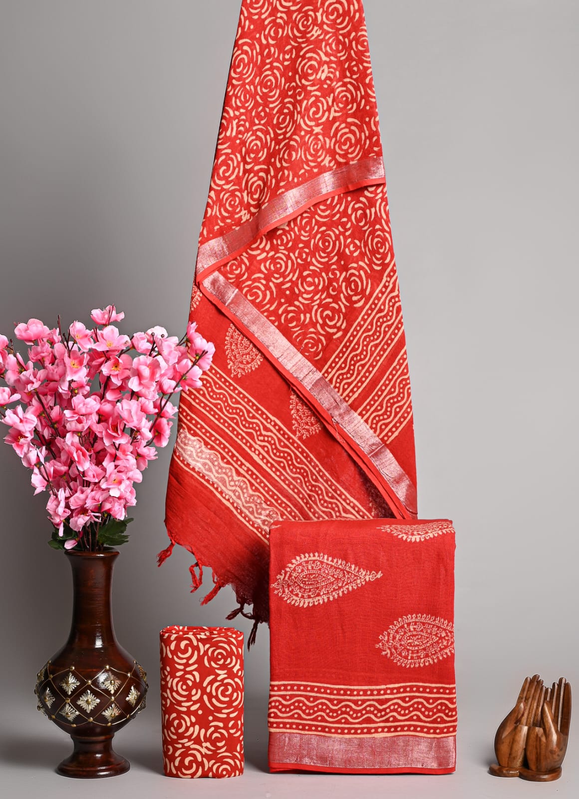 - Kurta Fabric- Linen printed (2.5 mtr),Colour-Red